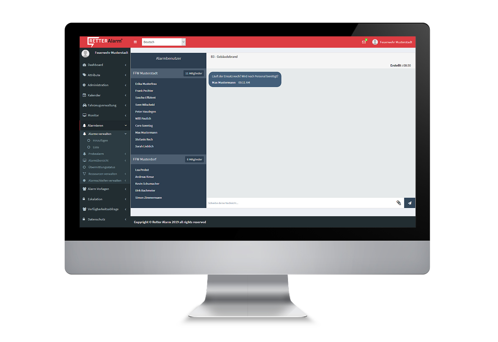 Der Alarmchat wird nach Abschluss des Alarms geschlossen und revisionssicher gespeichert.